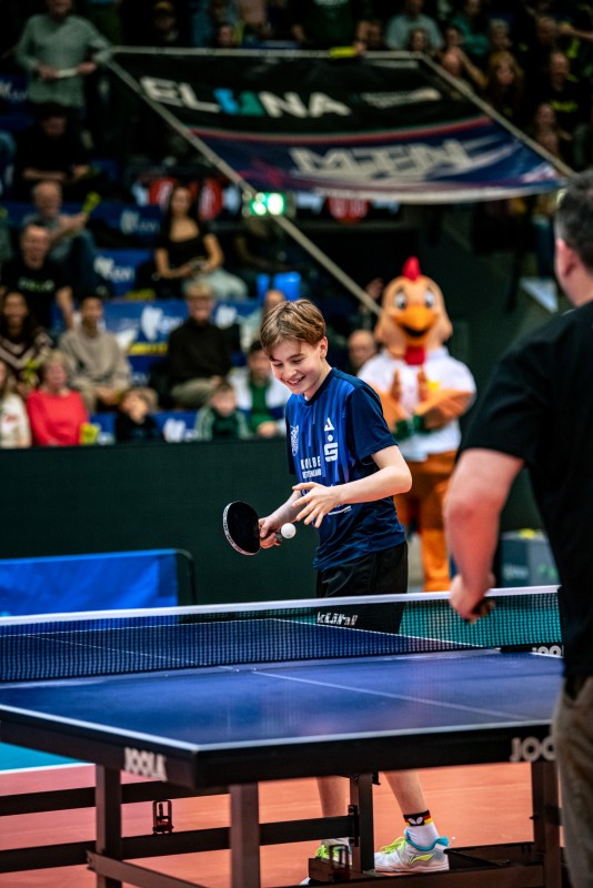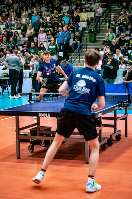Am Tisch zeigten unser Jugendnationalspieler Maris und Abwehr-Ass Dominik sehenswerte Ballwechsel und begeisterten damit das Publikum. Die Zuschauer hatten sichtlich Spaß und spendeten viel Applaus.